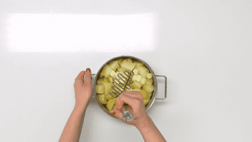 Готовый горячий картофель размять в пюре со сливочным маслом.