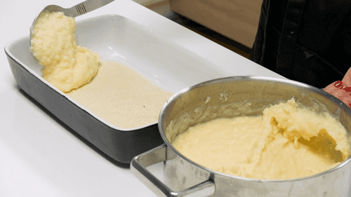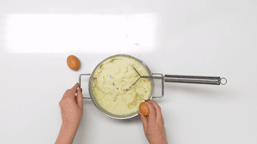 Добавить к пюре молоко и яйца. Перемешать до однородной консистенции. Посолить при необходимости.