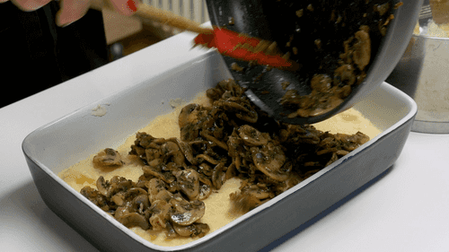 Это замечательный способ интерпретировать традиционную мясную запеканку. В этом рецепте лук добавит шампиньонам глубину и характер, а чеснок вместе с зеленью освежит насыщенный и тяжелый вкус готового блюда.