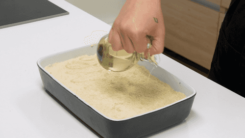 Посыпать запеканку оставшимися сухарями, сбрызнуть растительным маслом и отправить в духовку, разогретую до 200 градусов, на 30–40 минут или пока верх запеканки не станет приятного золотистого цвета.