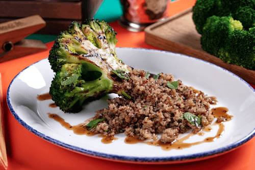 Брокколи, приготовленная на гриле и поданная с киноа, представляет собой гармоничное сочетание свежести и текстуры. Это блюдо, разработанное Сэбби Кеньоном, бренд-шефом ресторанов Steak It Easy, наполняет тарелку яркими оттенками и неповторимыми вкусами. Гриль придает брокколи легкую карамелизацию, которая прекрасно контрастирует с нежной киноа, создавая не только вкусное, но и питательное угощение. Такое сочетание идеально подходит для легкого ужина или здорового обеда, подчеркивая аутентичность и креативность современной кухни.