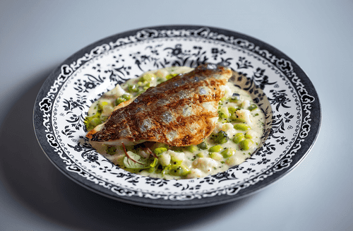 Дорада, приготовленная на гриле, подается с нежным овощным ризотто, что создает удивительное сочетание вкусов. Это блюдо, разработанное шеф-поваром Владимиром Чистяковым из ресторана Buro TSUM, объединяет свежесть морепродукта с кремовой текстурой ризотто, насыщенного ароматом обжаренных овощей. Оно станет отличным выбором как для романтического ужина, так и для дружеских встреч, привнося в атмосферу изысканность и уют.
