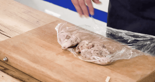 Спустя пару часов замотать бедра в пищевую пленку или поместить их в пакет с герметичным замком и положить в кастрюлю с водой. Держать 2,5 часа в кастрюле на тихом огне, не доводя до кипения. Или отправить бедра на 1 час в мультиварку, температура которой разогрелась до 80 градусов.