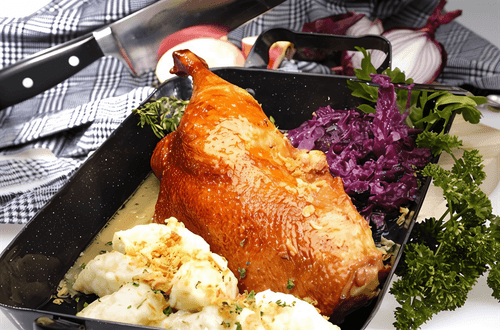 Утка по-английски – это воплощение традиционного британского гостеприимства. Запечённая до золотистой корочки, она пропитывается насыщенными ароматами бекона, лука и хрустящих крошек хлеба. Фарш с петрушкой придаёт блюду нежность и пикантность, а тающая во рту мясная текстура превращает его в настоящий кулинарный шедевр. Это блюдо изначально готовилось в Англии как часть праздничных застолий, подчёркивая любовь британцев к сытной, домашней пище. Утка, запечённая в собственном соку, приобретает насыщенный вкус, а подача с овощами делает её гармоничной и эстетичной. Идеальный выбор для уютного семейного ужина или торжественного застолья, где каждый кусочек – это сочетание глубины вкуса и традиции.