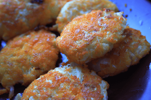 Из охлажденной массы приготовить котлеты, смочить их в яичном белке, обвалять в сухарях и обжарить с обеих сторон. Котлеты подать к столу с молочным или сметанным соусом.