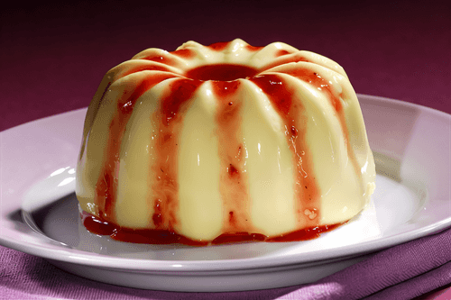 Снять с огня, ввести желток, сахар и 10 грамм масла, хорошо взбить, слегка смешать со взбитым белком, выложить в формочку, смазанную маслом, и на пару довести до готовности. Перед подачей вынуть из формы и украсить джемом или вареньем.