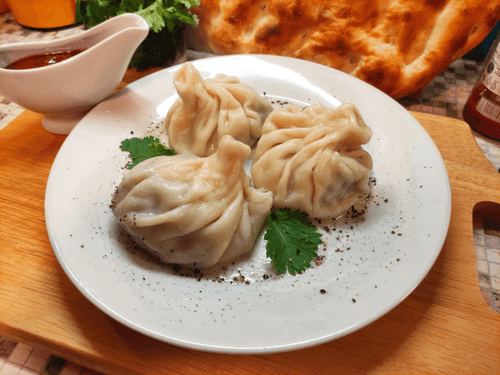 Вареные хинкали с сочным фаршем из говядины, свинины и зелени