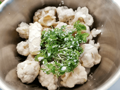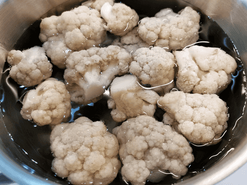 Цветную капусту отправить в кастрюлю с водой. После закипания варить 10 минут на среднем огне.