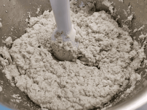 Превратить ингредиенты в пюре погружным блендером. Если консистенция окажется недостаточно пюреобразной или суховатой, добавить еще немного сливок.
