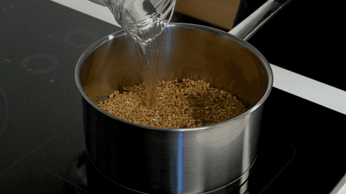 Гречневую крупу залить водой в пропорции 1:2, довести до кипения, понизить огонь и варить до готовности — около 20 минут.