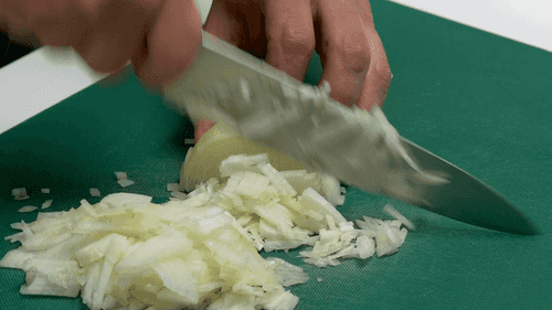 Лук очистить и нарезать мелкими кубиками.