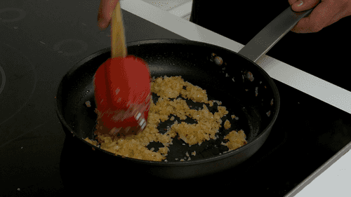 Разогреть растительное масло в сковороде и обжарить лук до золотистого цвета.