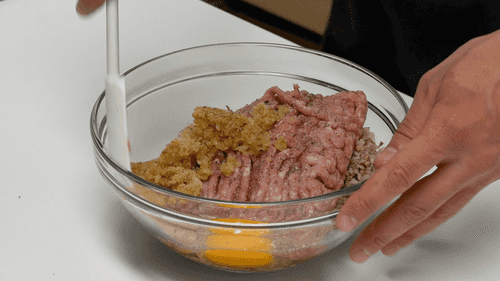Смешать гречневую крупу с фаршем, яйцом и луком. Посолить и поперчить.