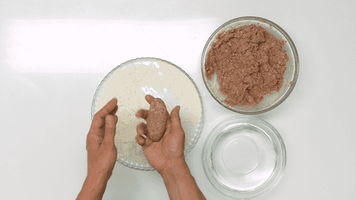 Смачивая руки в холодной воде, сформировать котлеты одинакового размера.