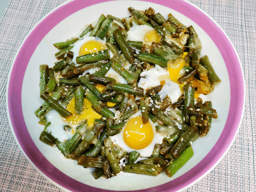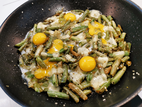 Стручковая фасоль с сыром и перепелиными яйцами
