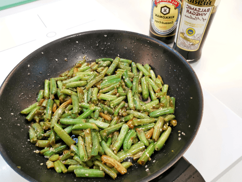 Влить бальзамический уксус и снова перемешать.