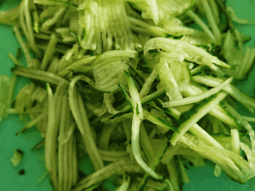 Нарезать огурец соломкой.