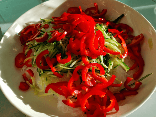 Фунчоза с овощами и морковью по-корейски