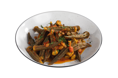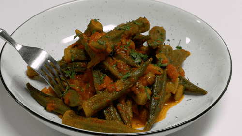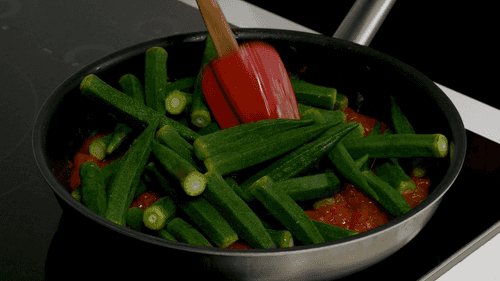 Бамию порой критикуют за её жесткость, но причина в неправильной подготовке. Перед тем, как поместить бамию на сковороду, обязательно удалите плодоножку — это позволит ей стать мягкой и аппетитной после недолгого прогрева. Обратите внимание на семена: старайтесь сохранить их целыми, когда будете отделять плодоножку от стручка. Этот рецепт идеально подойдет для веганов — он прост и насыщен цветом.