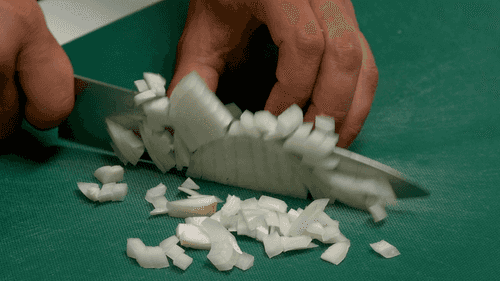 Лук очистить и нарезать средним кубиком.