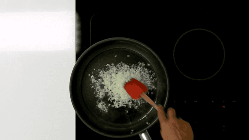 В сковороде разогреть масло и обжарить лук до прозрачности.