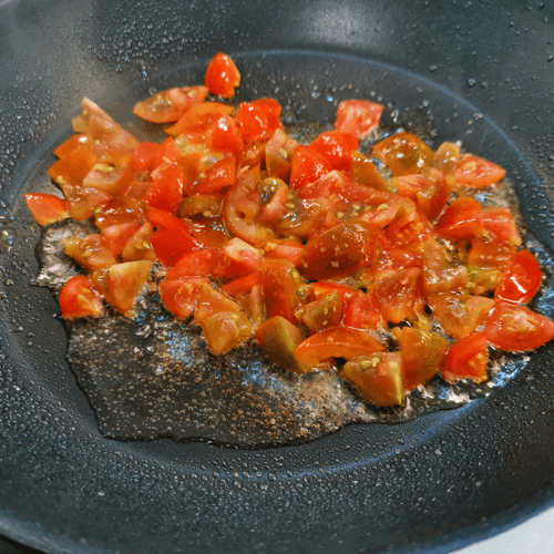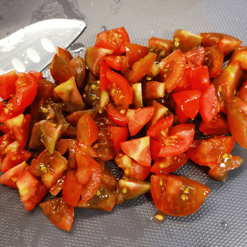 Выложить нарезанные помидоры.
