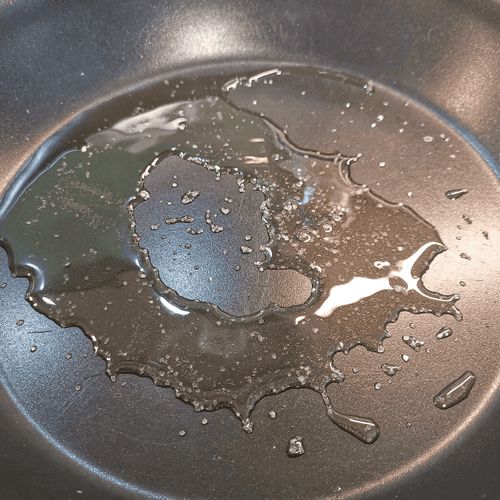 Нагреть в сковороде масло и добавить пару щепоток крупной соли.