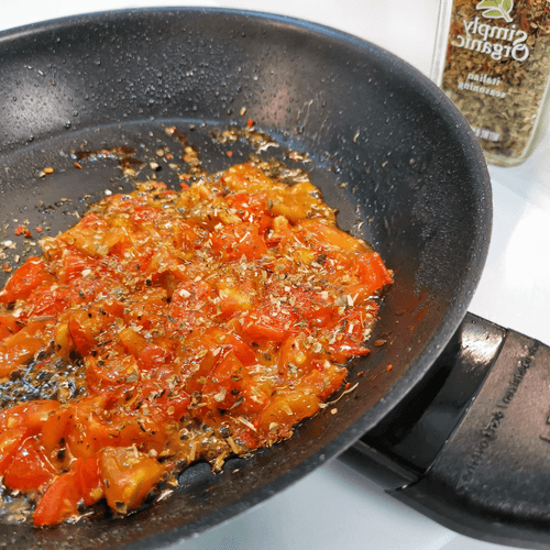 Готовить на сильном огне, постоянно помешивая. Добавить итальянские травы.