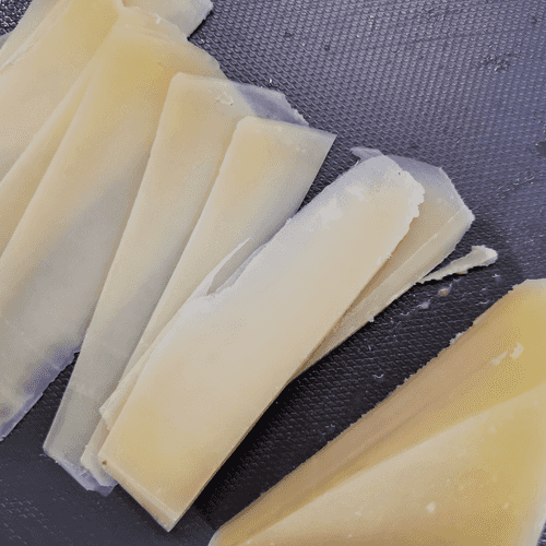 Пармезан нарезать тонкими слайсами.
