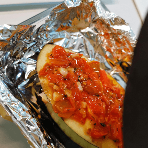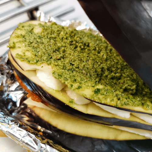 Баклажан Пармиджано – это настоящее произведение искусства итальянской кухни. Он вобрал в себя все оттенки средиземноморского вкуса: нежный, сливочный пармезан, тягучая моцарелла, ароматные травы и освежающая кислинка помидоров черри. Это блюдо напоминает классическую Пармиджану, но в необычном формате – баклажан выступает не просто как ингредиент, а как основа, впитывающая в себя богатство вкусов. Легкая сладость баклажана в сочетании с пикантными нотами песто делает блюдо неотразимым. Запеченный в духовке, он становится сочным и мягким, а сырная корочка добавляет ему текстурной гармонии. Идеальный выбор для уютного семейного ужина или изысканной закуски на праздничном столе, передающий дух теплых итальянских вечеров.