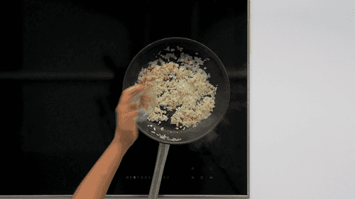 Добавить чеснок и жарить 30 секунд до появления яркого аромата.