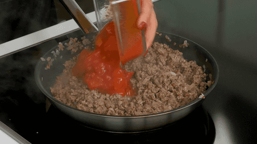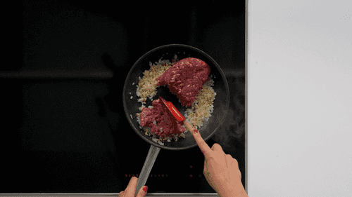 Добавить в сковороду фарш, жарить, пока он не изменит цвет.