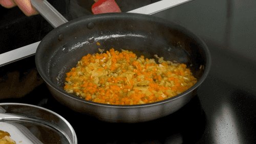 В той же сковороде пожарить лук с морковью в течение 5–7 минут.