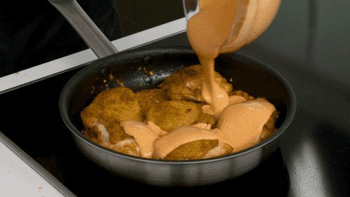 Тюнинг куриным бедрам устраивают карри, паприка и горчица, смешанные в удачной пропорции. Пример того, как умело подобранные специи могут поднять на новый уровень даже самый бесхитростный рецепт. Чтобы приготовить тушеную курицу на сковороде, нужна будет еще и сметана, поскольку густой сметанный соус сплотит вместе приправы и мясо и сгладит остроту. В целом крайне экономный и добротный семейный рецепт, но от него ощутимо веет пряной экзотикой, способной любой будничный ужин превратить в приключение с хорошим концом.
