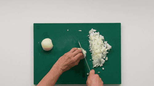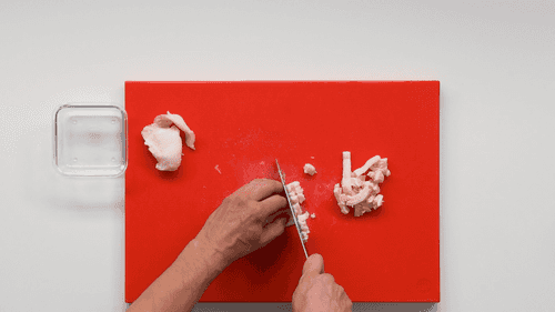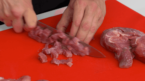 Нарезать баранину кубиком со стороной 7–10 мм.