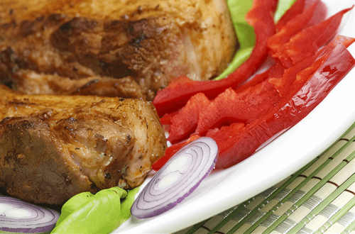 Запеченное мясо разрезать на ломтики, полить образовавшимся соусом и подать с варениками или тушеной свежей капустой.