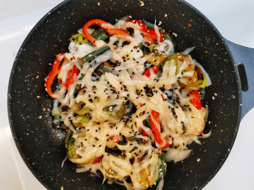 Как только сыр расплавится, снять крышку и посыпать черными кунжутными семечками.