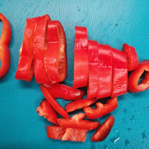 Перец рамиро нарезать кольцами.