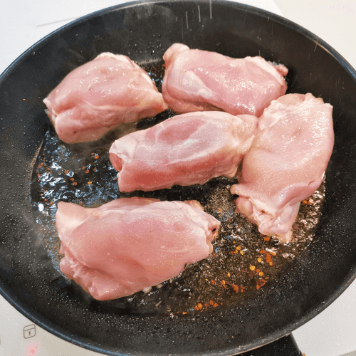 Выложить курицу в раскаленную сковороду.