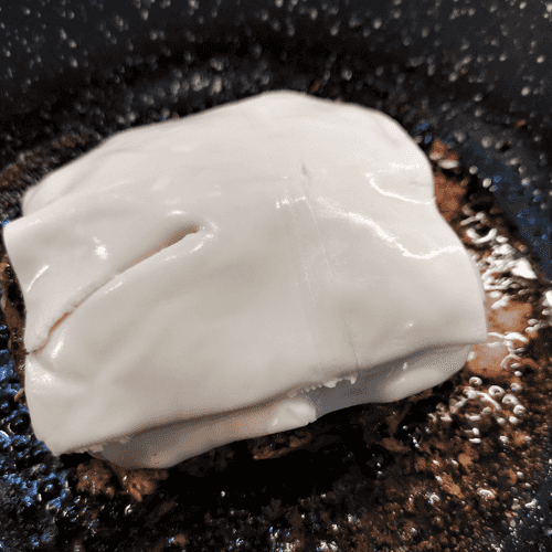 Через 5 минут снова перевернуть и накрыть моцареллой.