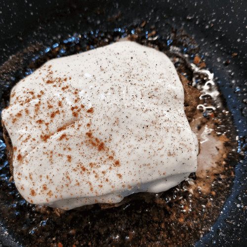 Как только нижняя сторона подрумянится, перевернуть. Убавить огонь до среднего.