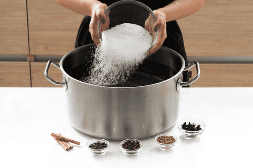 Начать готовить утку за двое суток. Сначала приготовить маринад. Налить в большую кастрюлю воду, добавить соль (600 г) и все специи. Довести до кипения и дать полностью остыть.
