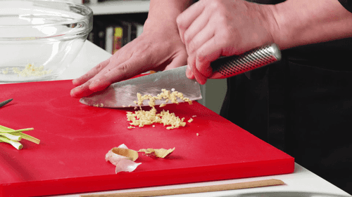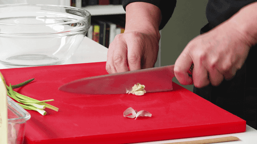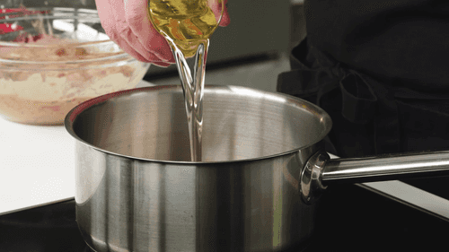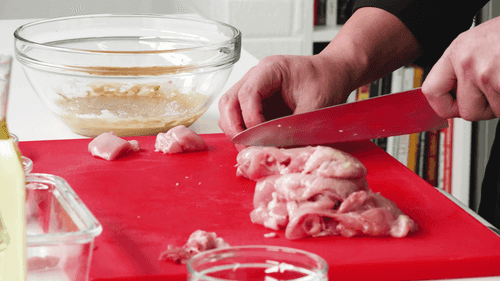 Обжарить курицу в масле в течение 4–6 минут. Чтобы проверить на готовность, достать кусочек и разрезать его. Он должен быть белым внутри.