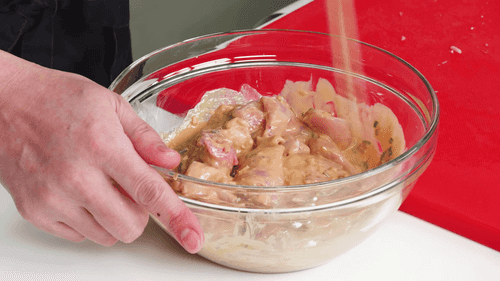 Поместить курицу в подготовленный маринад и перемешать, чтобы мясо полностью им покрылось.
