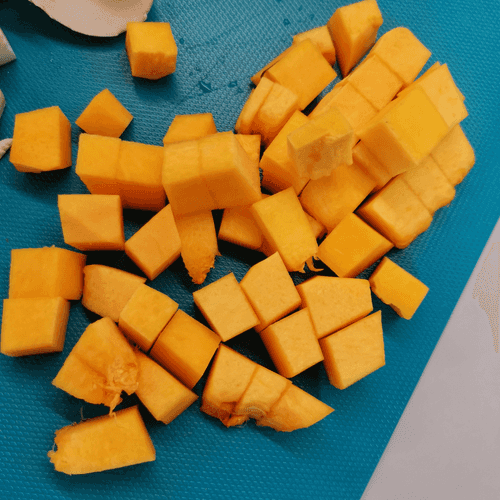 Тыкву нарезать небольшими кубиками.