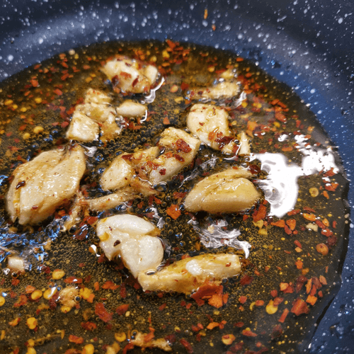 Отправить в нагретое масло с хлопьями чили.
