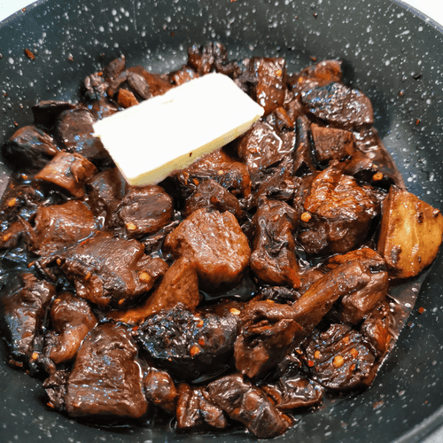 Через 2 минуты снизить огонь и добавить сливочное масло.