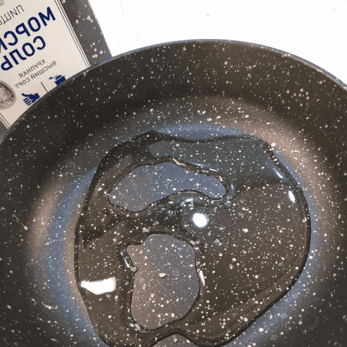 Разогреть на сковороде оливковое масло с щепоткой соли.