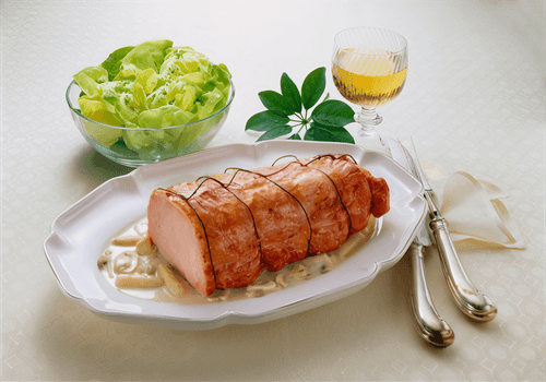 Затем в полученный соус положить обжаренную корейку и тушить ее в жарочном шкафу.