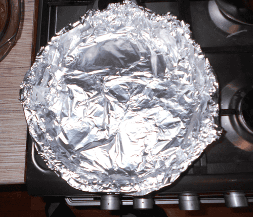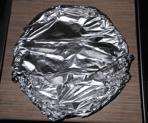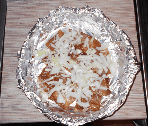 Взять форму для запекания и выложить дно фольгой.